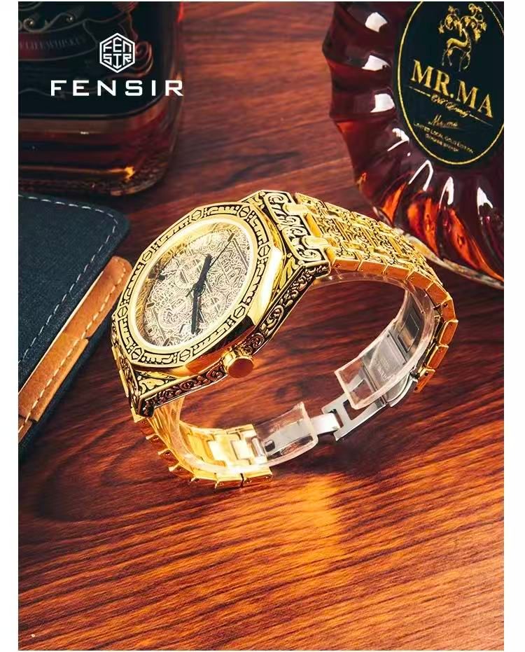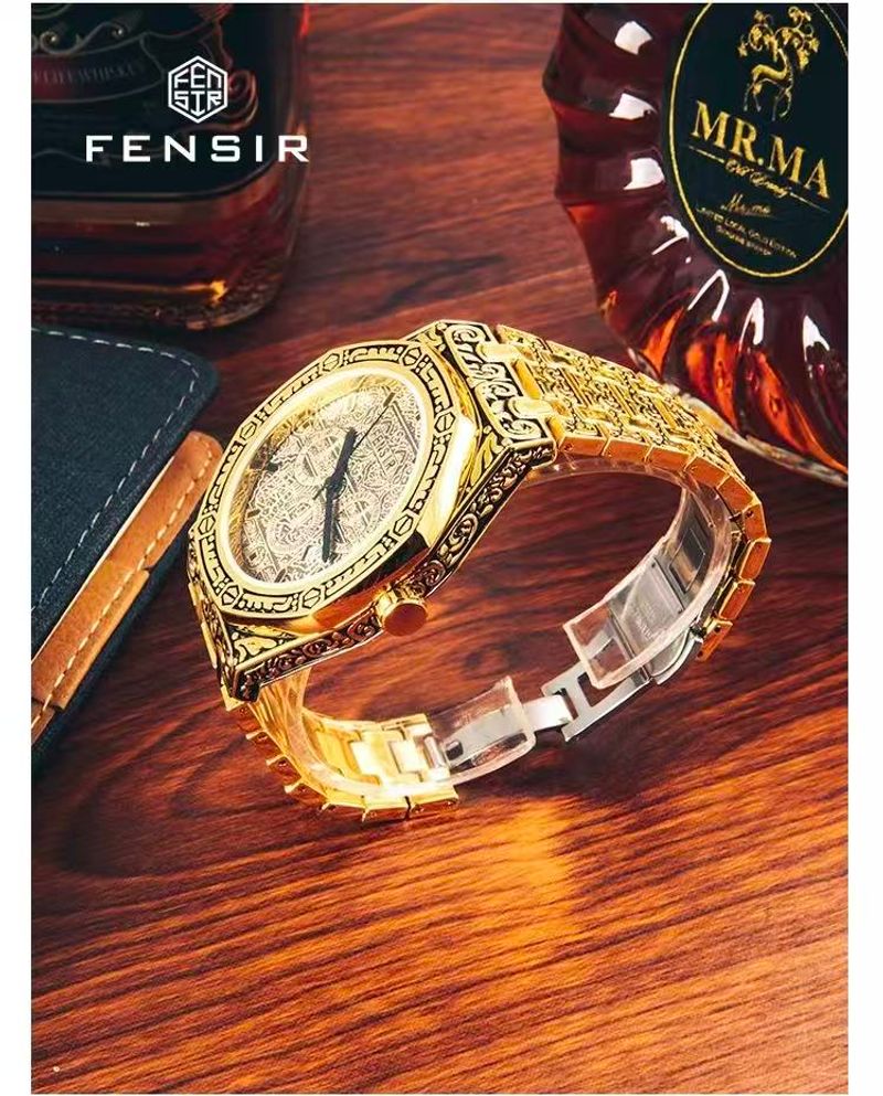 🔥🔥FENSIR engraved men's black-stone quartz watch